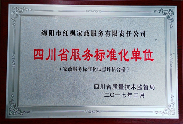 2016年12月,綿陽紅楓家政公司被四川省質監局確定爲“四川省(家政)服務标準化單位”。