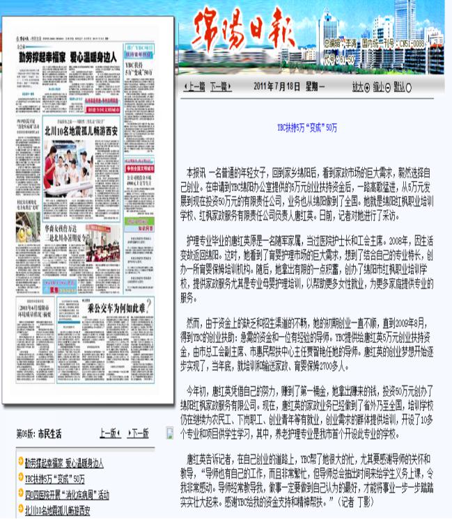 綿陽日報(bào):綿陽紅楓家政公司創(chuàng)業之路