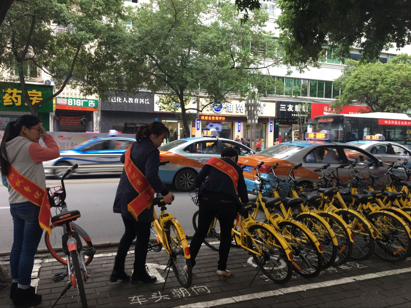 共享單車的推出,踐行瞭綠色環保出行的初衷,随著共享單車使用的越來越廣泛,作爲生活在是新時期的我們,公共基礎設施的建立,爲我們帶來諸多便利的同時,我們也應該盡力保護公共物品與基礎設施。榜樣的力量是無窮的,這句話正顯現在綿陽市家政龍頭企業——綿陽市紅楓家政服務有限責任公司的“巾帼志願者”團隊身上。28日,綿陽紅楓家政巾帼志願者團隊的部分志願者走到街頭,義務整理共享單車,並對不規範停車市民進行勸導,提倡大家保護環境與市容的意識。紅楓巾帼志願者團隊用自己的行動傳遞著正能量,並赢得瞭廣大市民的點贊。正如“正能量在路上”公益項目所宣揚的精神一樣,用自己的善舉溫暖整個出行領域.