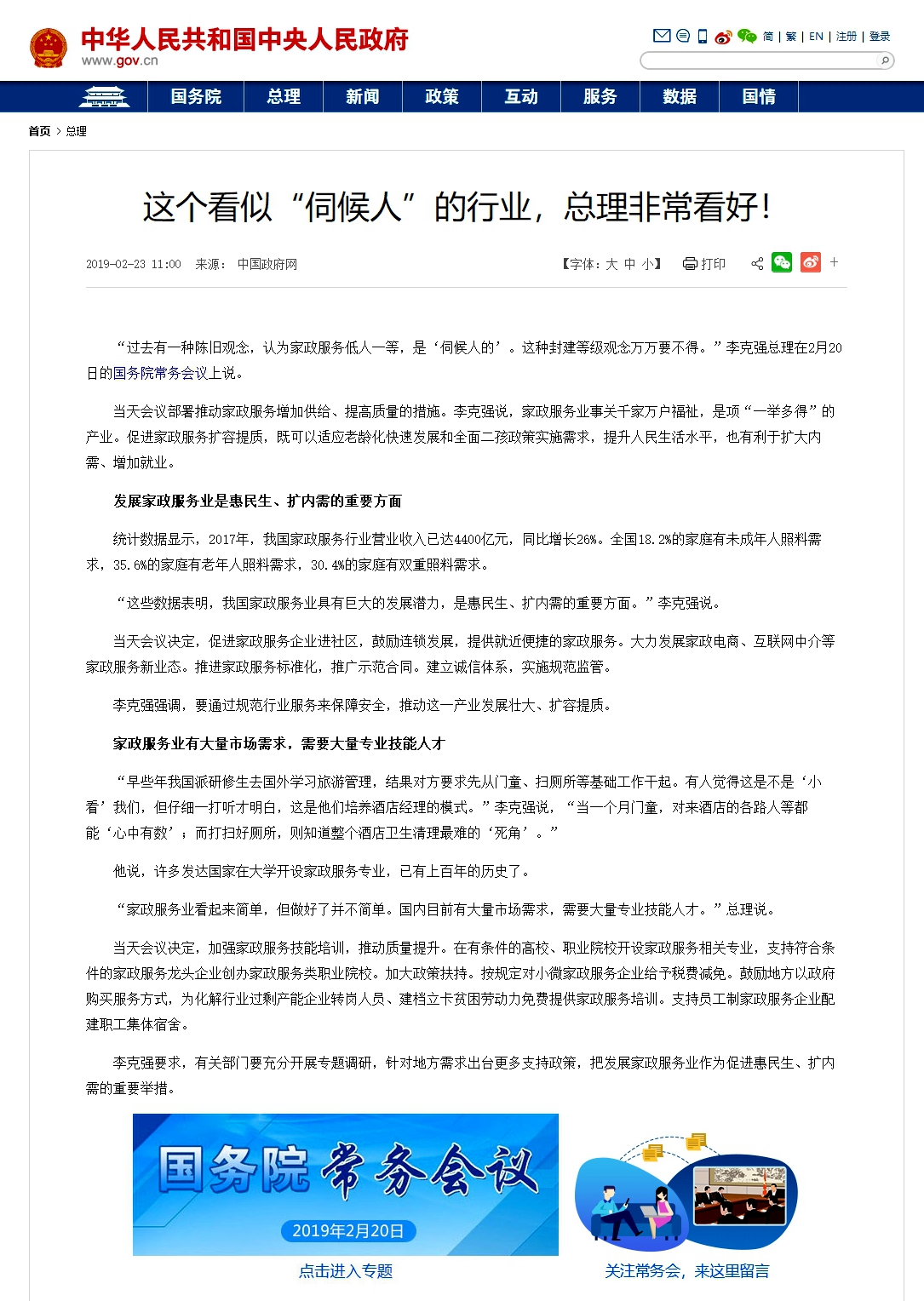 從(cóng)“伺候人”到“人上人” ——總理點(diǎn)贊綿陽紅楓家政公司從(cóng)事的這個行業
