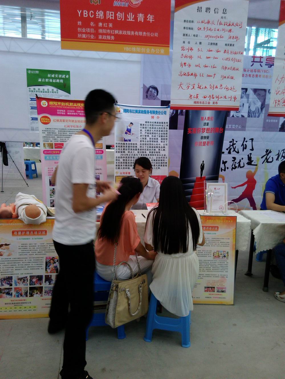 綿陽市紅楓家政公司積極響應綿陽市總工會、綿陽YBC辦公室的号召,參加6.5日在九州體育館舉行的“插上科技的翅膀-服務科技型企業促進高校畢(bì)業生就業招聘會(huì)”,在公司總經理唐紅英女士的帶領下,我公司針對此次求職者爲職業技術院校應屆畢業生,爲即将參與工作的青年提供瞭大學生家政服務平台、家政咨詢教育平台及職業規劃就業指導;在與各位求職青年溝通過程中,大部分求職者都對家政行業前景看好,選擇我公司就業。在此次招聘會中我公司招聘有幾次非常優秀的求職者,她們熱愛家政、育嬰、保潔教學及服務工作,而且還持有教師資格證、營養師證、育嬰師證等相關技能證書。綜上所述越來越多的大學生加入家政,服務家政成爲家政行業的新生軍。