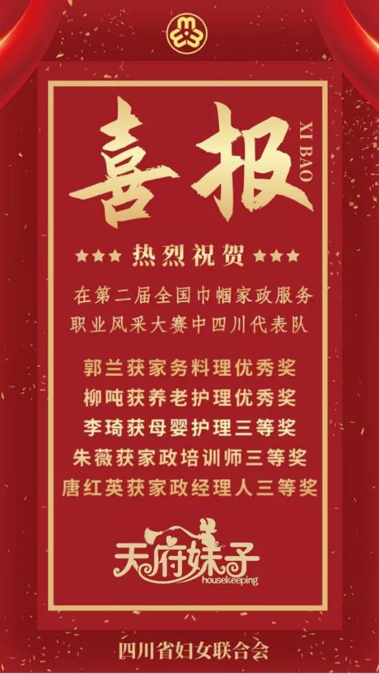 【喜報】熱烈祝賀綿陽市紅楓家政服務有限責任公司總經理唐紅英女士在“建行杯”第二屆全國巾帼家政服務職業風採大賽中榮獲三等獎。