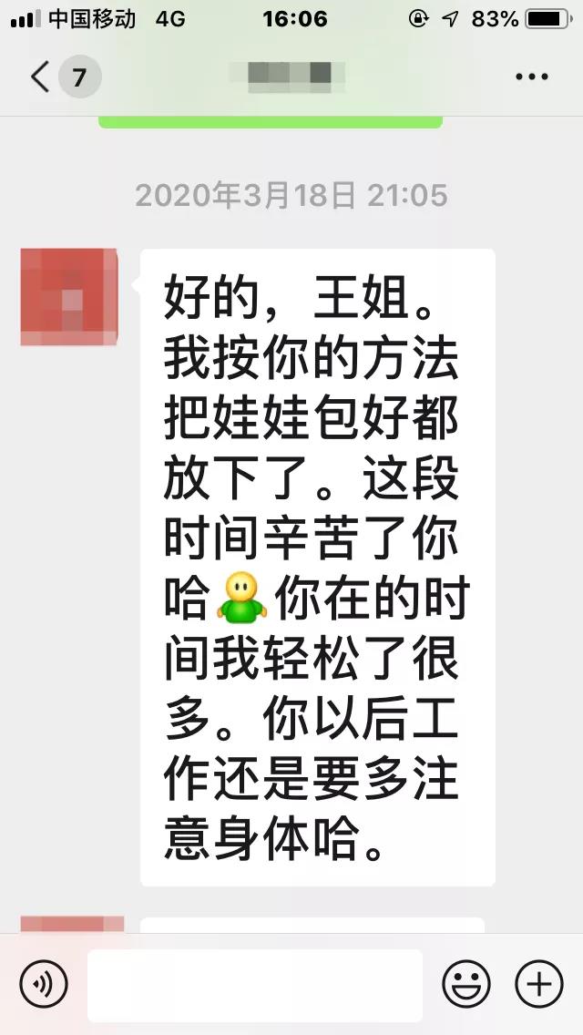 客戶本來打算是回家後再請我。當她住院那天,我們還提前溝通瞭:今天暫時不需要到醫院,等回家瞭再聯系我。當時寶媽在醫院是老公和姐姐在照料,剖腹産。本來生完後身體很虛弱,需要休息。但因爲乳汁很少,寶寶也沒有喝奶粉,一直不停地哭。她隻好頻繁喂奶。覺也睡不好,精神也十分煩躁。加之姐姐在照料的時候不太懂方法,連産後第一次小便也在催促。急得寶媽沒有排出小便,不得不又插上導尿管!實在撐不下去瞭,醫院與寶寶相處的每一秒都讓新手爸媽感到煎熬。寶爸提出說:不如我們現在把王姐叫來吧,實在太折騰瞭。寶媽非常善解人意,要求寶爸說:不行,人家王姐提前還問你什麽時候來,你非要說回家瞭來。現在大晚上的,不要吵著王姐。再怎麽也得明天早上。寶爸也很體貼,忍瞭又忍,到第二天淩晨4點終於忍不住瞭,給我打瞭一個電話。幸好我每天起得還算早,也有習慣看一看有沒有重要消息和未接電話。我一看,趕緊聯系瞭收拾衣服到往醫院趕。我還記得寶媽說得那句話:王姐,聽到您的腳步聲在走廊裏響起的時候,我覺得我半條命仿佛撿回來瞭,有救瞭!我到瞭醫院後,簡單和她們交流瞭一下情況:便對她們說,你們現在可以好好休息瞭,放心睡吧,有我呢!給寶寶喂瞭奶粉後,小寶一覺睡得香香的。幫寶媽做瞭清潔護理,也讓她好好休息。我去的第第二天,她早上一覺醒來,對我說:王姐,幸好你來瞭!我才睡瞭一個好覺!
