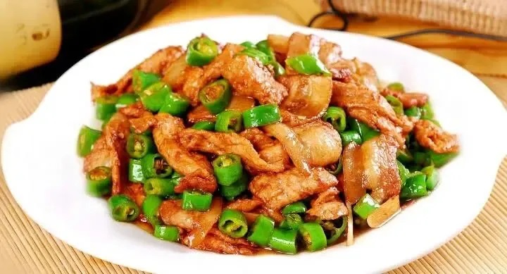 将切好的肉片或肉絲放在漏勺裏,浸入開水中燙1-2分鍾,等肉稍一變色立刻撈出來,然後再下鍋炒3-4分鍾,即可炒熟。由於炒的時間短,吃起來鮮嫩可口。