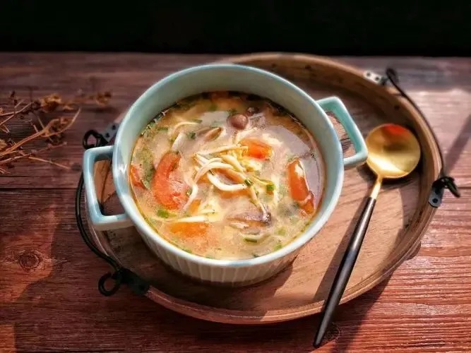 給寶媽多喝一些含蛋白質、維生素、鈣磷、鐵、鋅等營養元素的清湯,如精肉湯、蔬菜湯、蛋花湯、鮮魚湯等,湯要和肉一起吃才能真正攝取到營養。