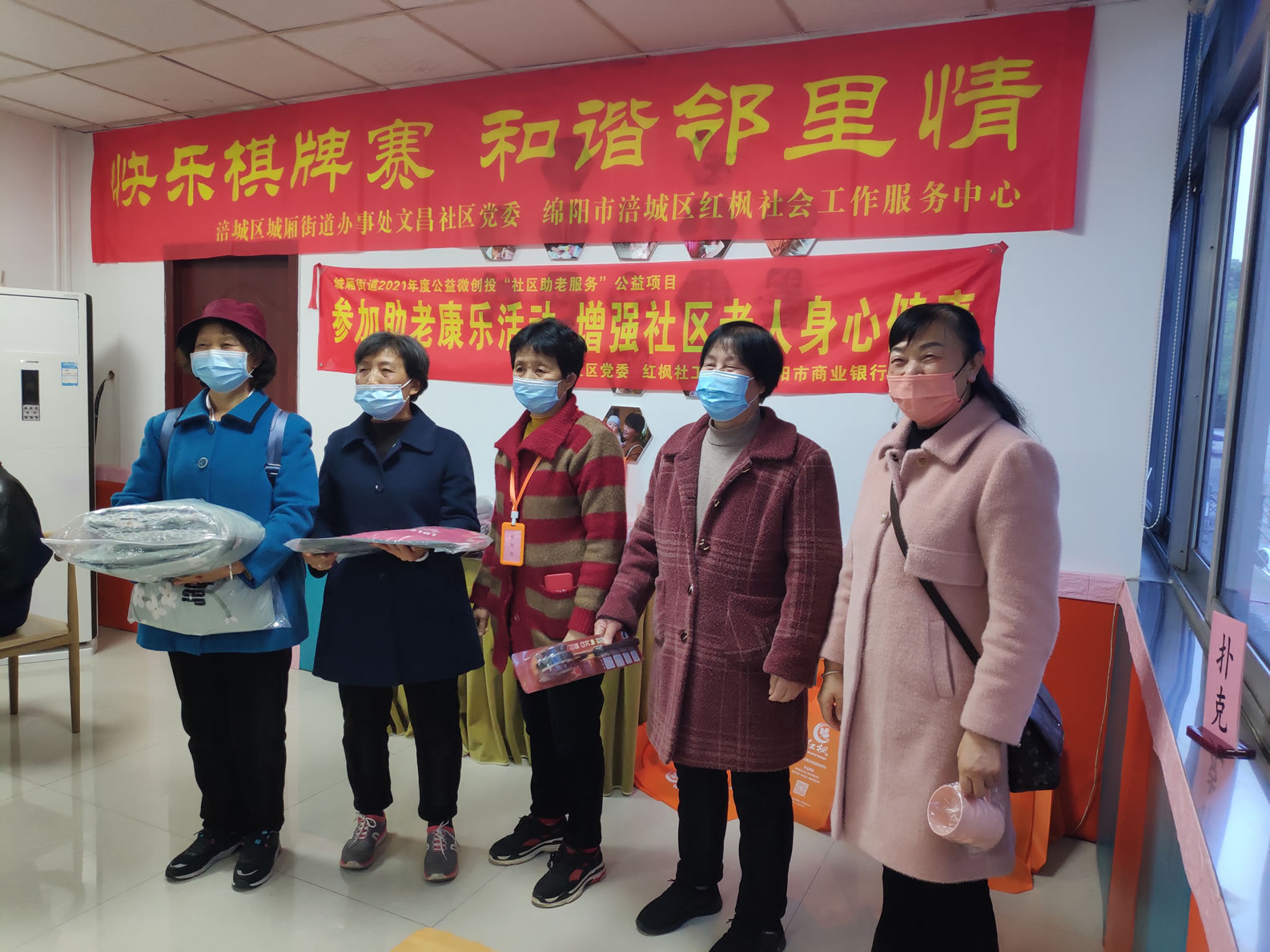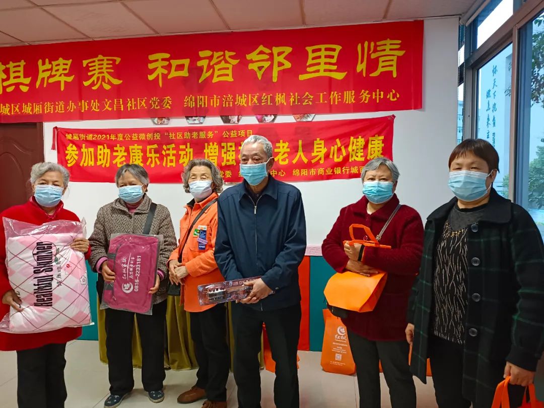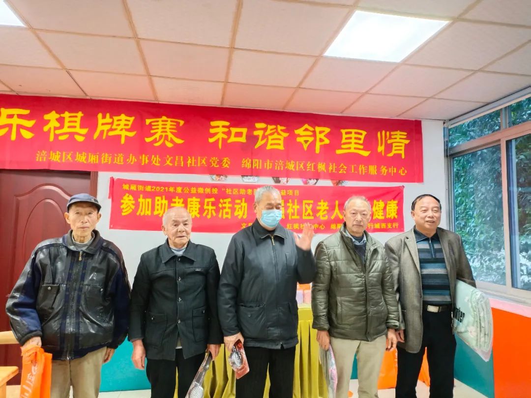 爲瞭(le)響應居民的呼聲,涪城區城廂街道辦事處文昌社區、綿陽市涪城區紅楓社會工作服務中心積極籌辦 “快樂棋牌賽 和諧鄰裏情”爲主題的棋牌比賽活動。此次比賽延續雀牌、象棋、撲克三個傳統項目,並(bìng)爲參賽的叔叔阿姨準備瞭(le)禮物,吸引瞭(le)許多社區老年人參與。
