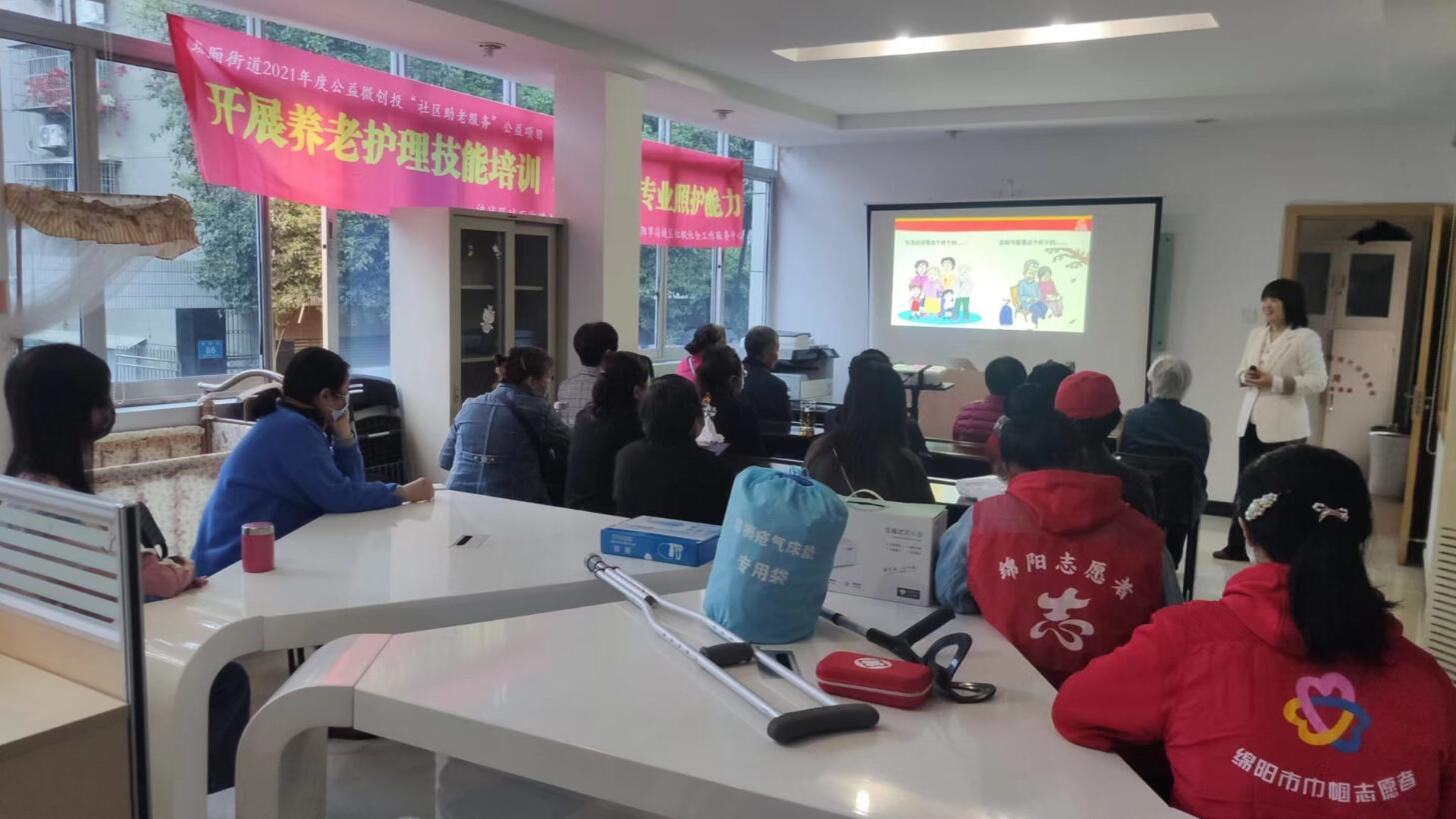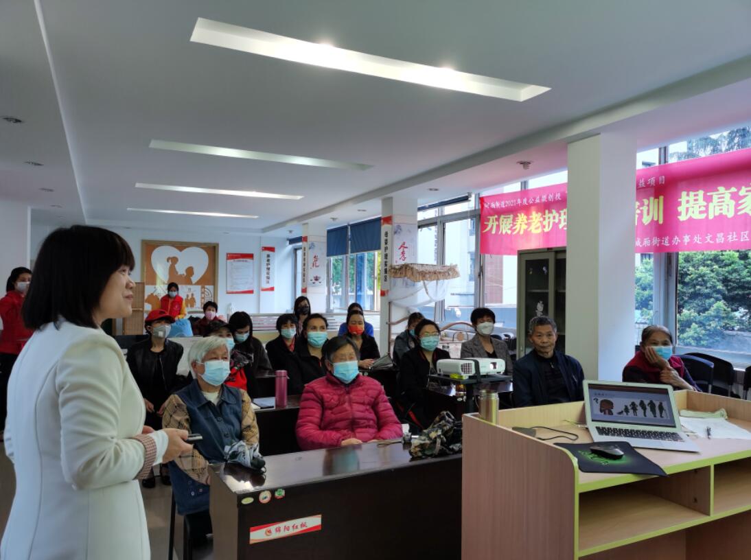 此次培訓邀請瞭具有多年醫護經驗的專業養老護理師授課。通過将理論知識與實際操作相結合的形式,圍繞老年生活照料、基礎照護、康複服務三個方面,用通俗易懂的語言進行專題講解,對日常護理知識、飲食照料及護理工作中常見的穿脫衣、卧床老人翻身、進食嗆咳、輪椅使用等開展培訓和練習。