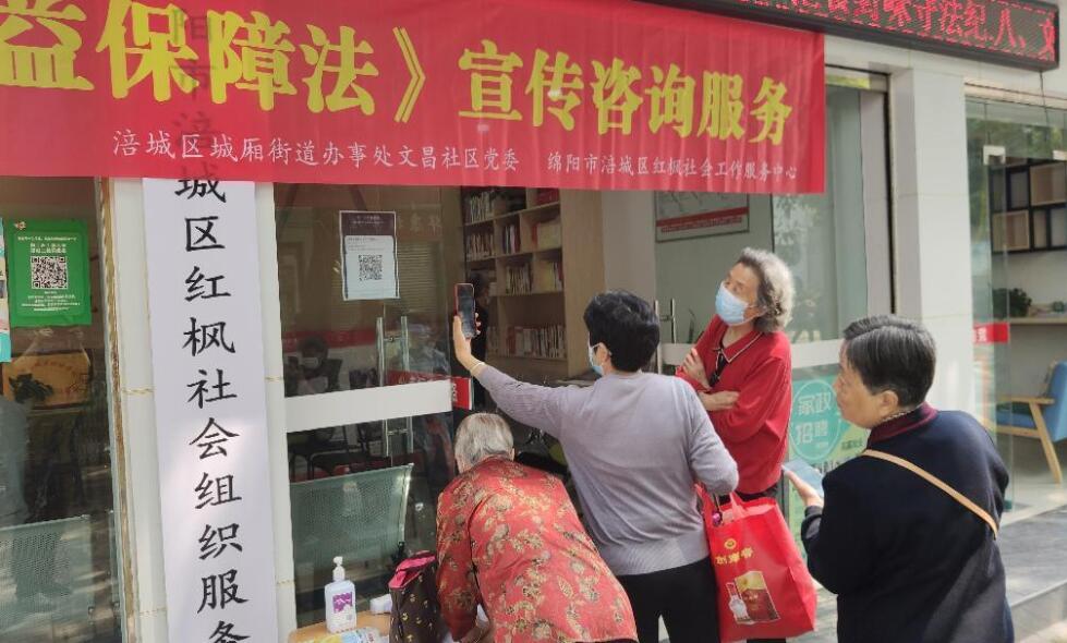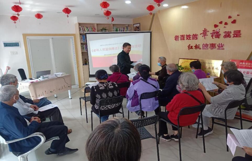 活動中, 綿陽市涪城區紅楓社會工作服務中心特邀瞭(le)專職律師、離任法官馬強等志願者到場(chǎng), 宣傳普及瞭(le)《老年人權益保障法》 、 《民法典》 等法律基本知識, 現場(chǎng)發放瞭(le)《老年人權益保障法》 、 維權名片等維權資料, 免費提供瞭(le)相關法律問題咨詢服務和活動小禮品。