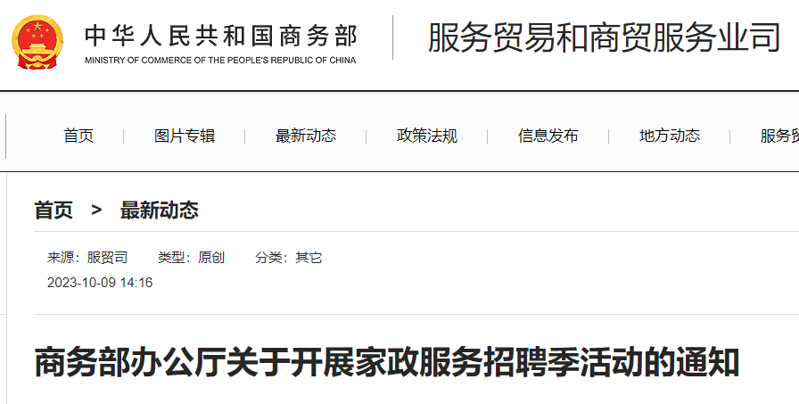 爲瞭(le)貫徹黨的二十大精神,推動實施家政興農行動,促進家政服務業提高質量和規模,激發家政服務消費需求,根據商務部、國家發展改革委員會發布的《2023年家政服務業提高質量和規模工作要點》以及商務部等16個部門印發的《2023年家政興農行動工作方案》,商務部在2023年的第四季度組織地方商務主管部門利用抖音、快手、支付寶等互聯網平台舉辦(bàn)瞭(le)“家政服務招聘季”線上直播招聘活動。