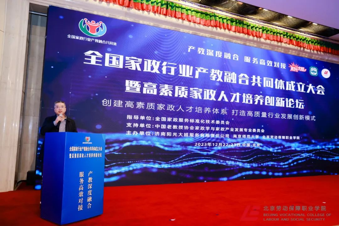 12月23日,由全國家政服務标準化技術委員會指導,中國老教授協會家政學與家政産(chǎn)業發展專業委員會支持,濟南陽光大姐服務有限責任公司、南京師範大學、北京勞動保障職業學院聯合主辦(bàn)的全國家政行業産(chǎn)教融合共同體成立大會暨高素質家政人才培養創新論壇在北京西藏大廈舉辦(bàn)。