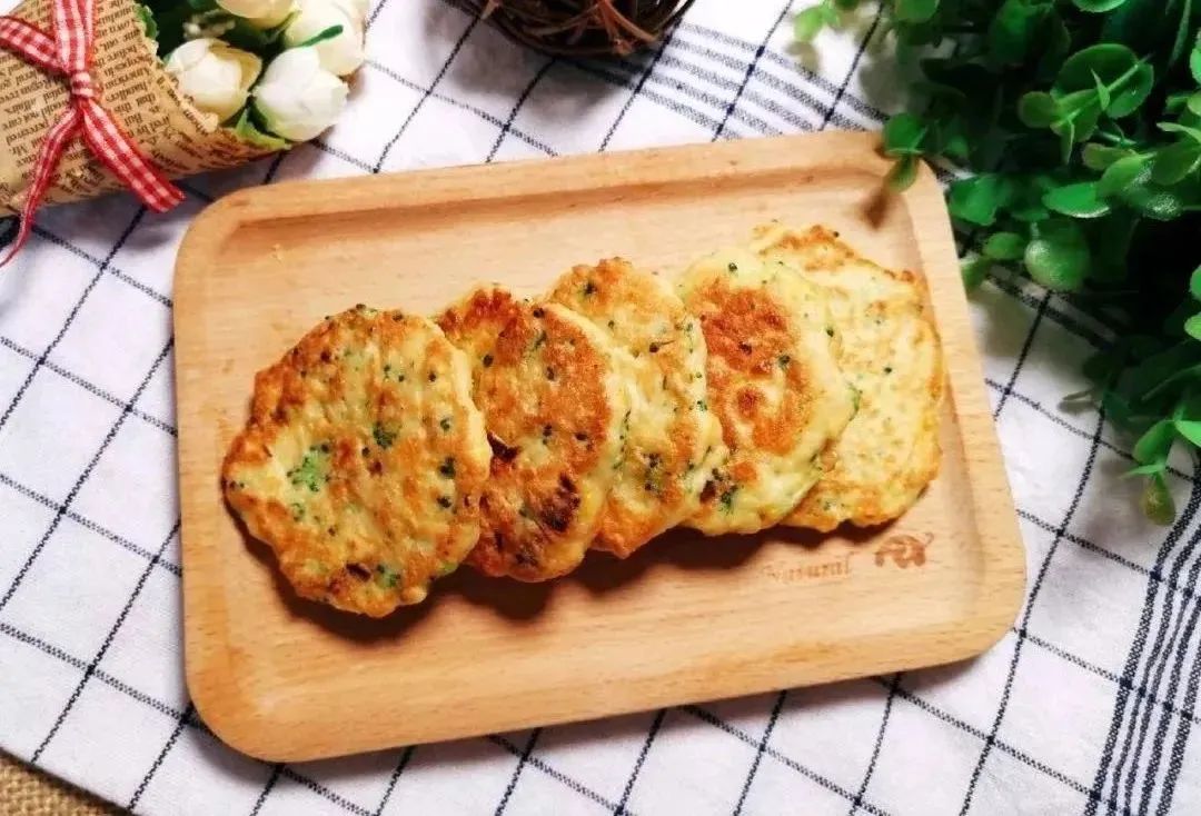 3. 平底鍋熱鍋冷油,用勺子挖一勺面團,放入鍋内。一面煎成型後,翻面關火用餘溫再加熱一會兒即可。
