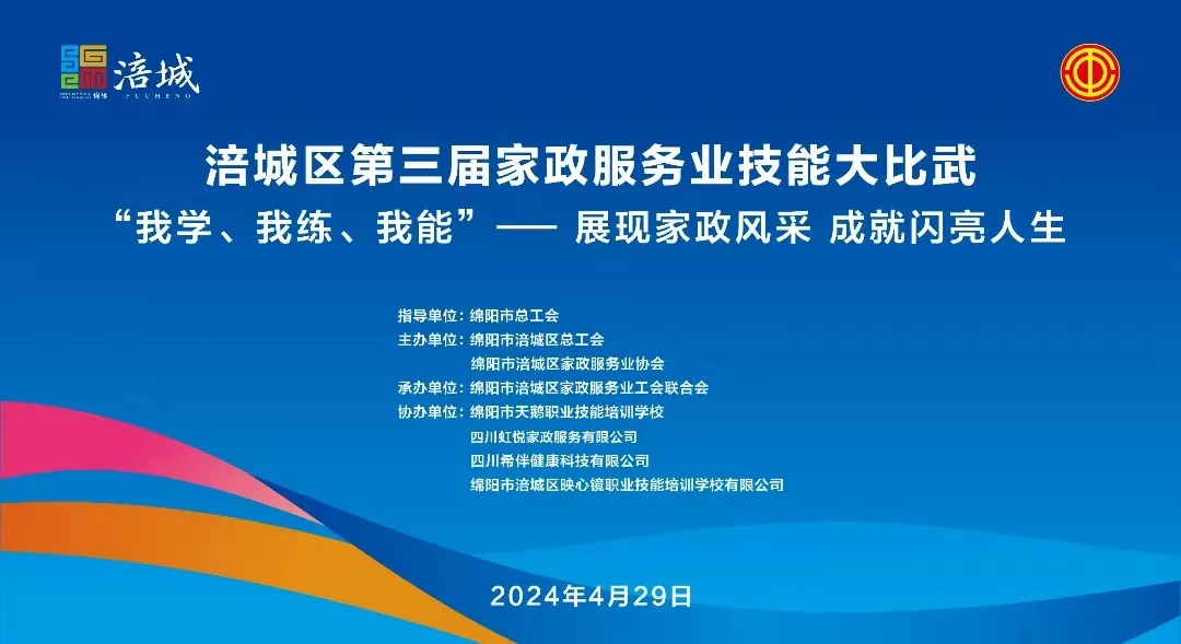 爲進一步促進家政服務業提質擴容,規範家政服務活動,維護家政服務各方合法權益,促進家政服務業健康發展,提升家政服務從業職工技能水平,助力涪城區高質量發展,綿陽市涪城區總工會、綿陽市涪城區家政服務業協會於2024年4月29日在綿陽聯合舉辦瞭第三屆家政服務業技能大比武。