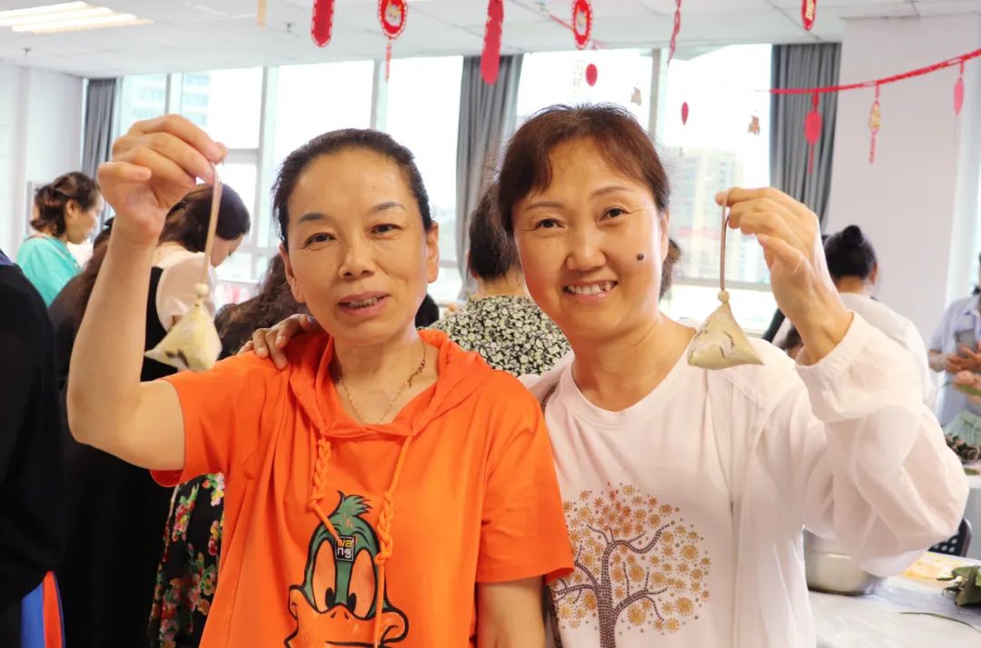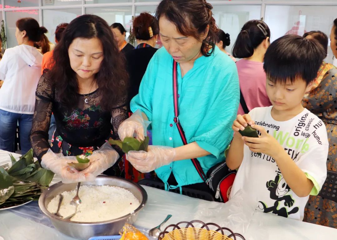 端午節食粽是我國的傳統習俗,在老師們的指導下,在場(chǎng)家政阿姨們紛紛動手,将一片片粽葉巧妙地折疊,填入糯米、紅棗等,再用棉線精心捆綁(bǎng)。