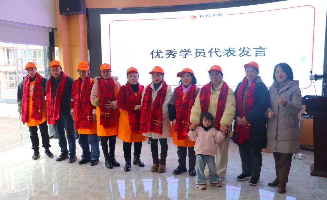 結業典禮上,學校爲考核合格的學員頒發瞭(le)結業證書,並(bìng)爲優秀學員、優秀組長頒發瞭(le)榮譽證書,優秀學員代表分享瞭(le) “技能賦能、重拾信心” 的學習感悟。一條條紅圍巾不僅是表彰,更是對學員們 “學有所成、業有所依” 的美好期許。