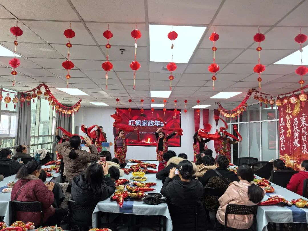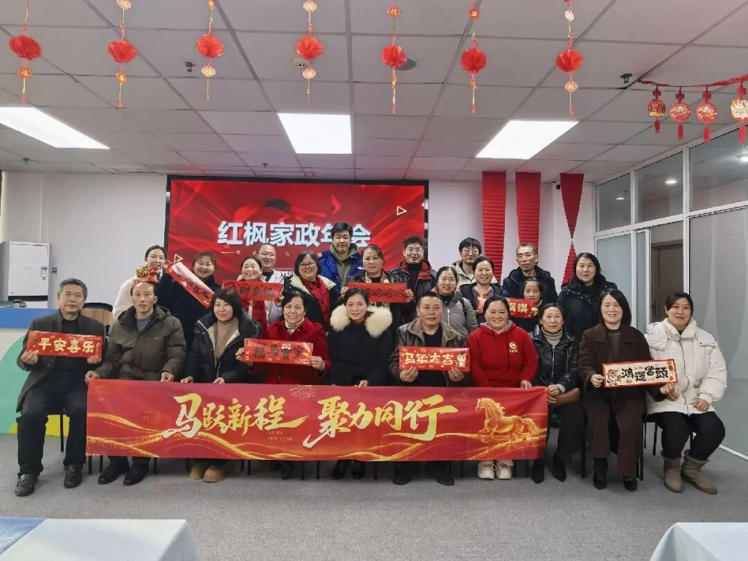 爲感謝家人們一年的辛勤付出,迎接新年到來,2月12日,紅楓家政部分家政服務人員代表在巾帼大廈5樓舉辦(bàn)瞭(le)溫馨熱鬧的年會活動。