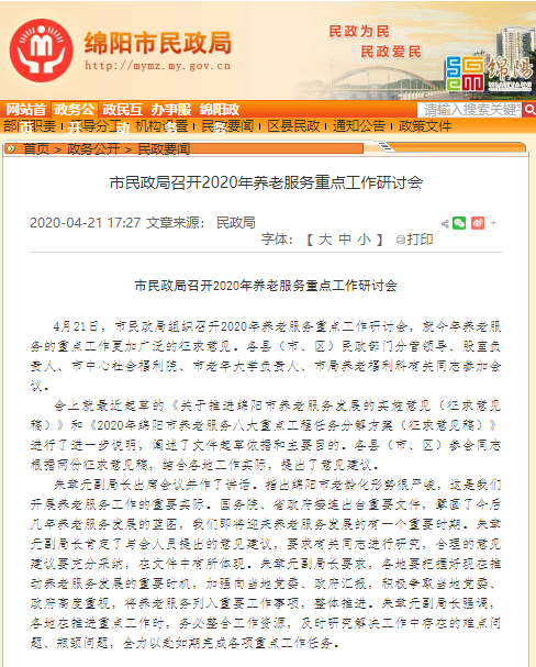 綿陽市民政局召開2020年養老服務重點(diǎn)工作研讨會(huì)